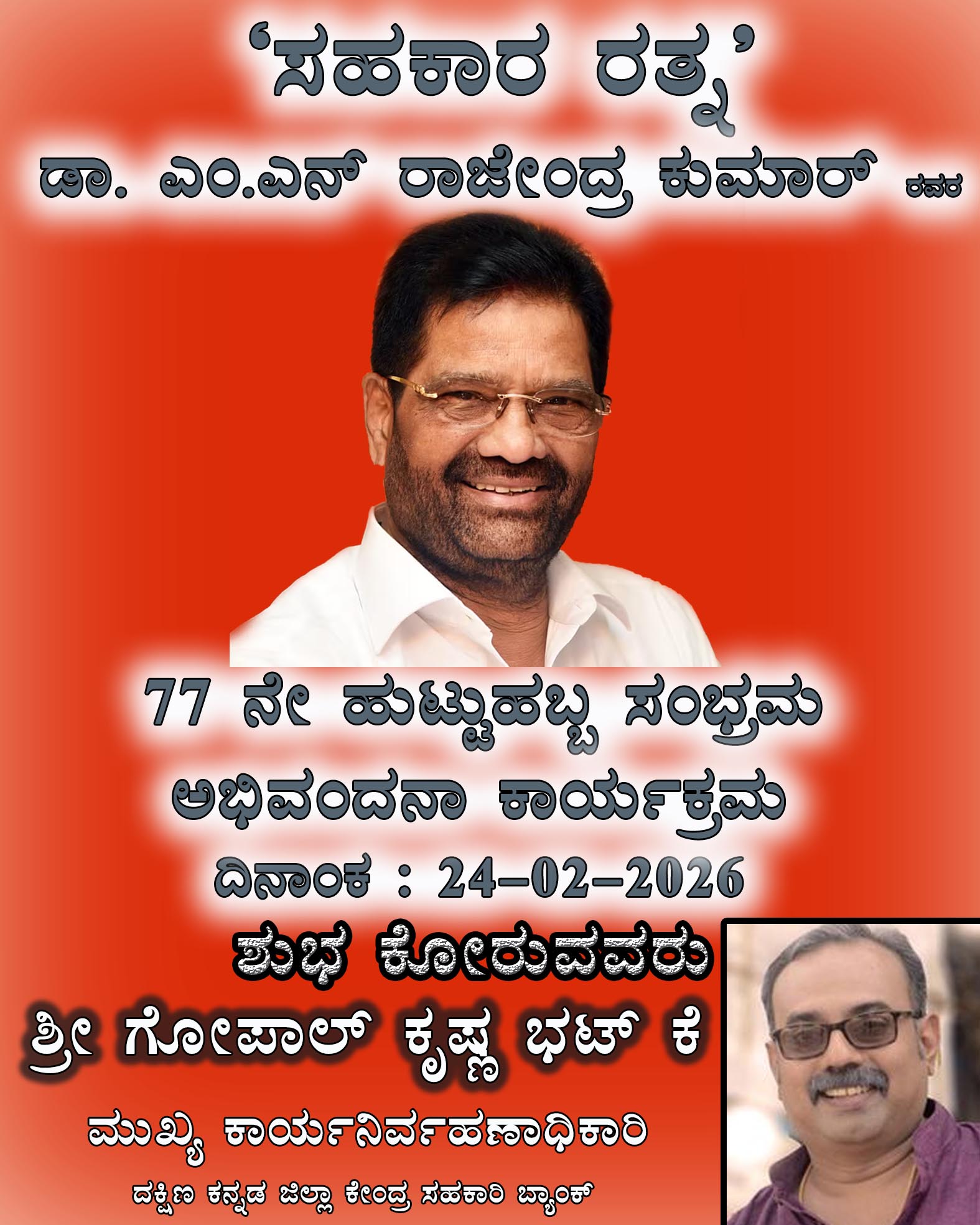 ಫೆ. 24ರಂದು ಸಹಕಾರ ರತ್ನ ಡಾ| ಎಂ.ಎನ್. ರಾಜೇಂದ್ರ ಕುಮಾರ್ ಅವರ 77ನೇ ಹುಟ್ಟುಹಬ್ಬ ಆಚರಣೆ
