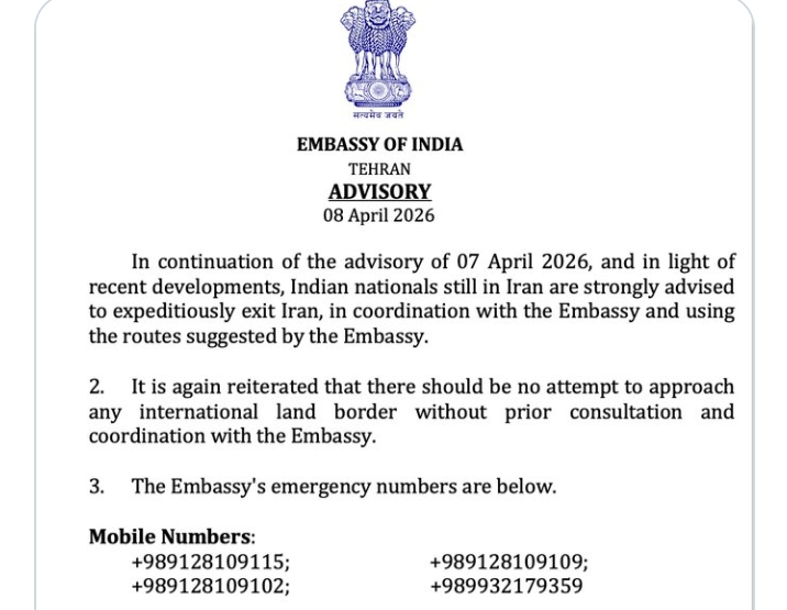"ತಕ್ಷಣವೇ ದೇಶವನ್ನು ತೊರೆಯುವಂತೆ" ಇರಾನ್ ನಲ್ಲಿನ ಭಾರತೀಯರಿಗೆ ಕೇಂದ್ರ ಸರಕಾರ ಸೂಚನೆ