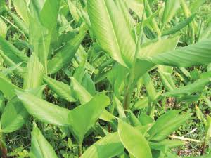 ಅರಶಿನ ಎಲೆಯಂತೆ ಕಾಣುವ ಎಲೆಗಳನ್ನು ಹೊಂದಿರುವ ‘ಕೂವೆ’ ಒಂದು ಔಷಧೀಯ ಸಸ್ಯವಾಗಿದೆ. ನಾಗರ ಪಂಚಮಿ ಸಮಯದಲ್ಲಿ ಅರಶಿನ ಎಲೆಯ ಜೊತೆ ಕೂವೆ ಎಲೆಯನ್ನೂ ಸೇರಿಸಿ ಮಾರಾಟ ಮಾಡುವವರು ಕೂಡ ಇದ್ದಾರೆ. ಅರಶಿನ ಎಲೆಗಿಂತ ಸ್ವಲ್ಪ ದಪ್ಪ ಮತ್ತು ದೊಡ್ಡದಾಗಿರುವ ಕಾರಣ ಸುಲಭವಾಗಿ ಪತ್ತೆ ಹಚ್ಚಬಹುದು. ಅರಶಿಣದಂತೆ ಪರಿಮಳ ಇರುವುದಿಲ್ಲ. ಸಾದಾರಣವಾಗಿ ತುಳುನಾಡಿನ ಎಲ್ಲರ ಮನೆಯ ಹಿತ್ತಲಿನಲ್ಲಿ ಕಾಣಸಿಗುತ್ತಿತ್ತು. ಈ ಸಸಿಯಲ್ಲಿ ಮೂಲಂಗಿಯಂತಹ ಗೆಡ್ಡೆ ಸಿಗುತ್ತದೆ. ಇದು ಒಂದು ಔಷಧೀಯ ಗೆಡ್ಡೆ ಎಂದರೆ ತಪ್ಪಾಗಲ್ಲ. ಆಯುರ್ವೇದದಲ್ಲಿಯೂ ಬಳಸಲಾಗುತ್ತದೆ. ಈ ಗೆಡ್ಡೆಗಳನ್ನು ತೊಳೆದು, ಹೆಚ್ಚಿ, ರುಬ್ಬಿ ಶುಭ್ರವಾದ ತೆಳುಬಟ್ಟೆಯಲ್ಲಿ ಸೋಸಿದಾಗ ತೆಳ್ಳನೆಯ ದೋಸೆ ಹಿಟ್ಟಿನಂತೆ ತಳದಲ್ಲಿ ಉಳಿಯುತ್ತದೆ. ಇದನ್ನು ಹಾಗೆಯೇ ಪಾತ್ರೆಯಲ್ಲಿಟ್ಟು, ಮರುದಿನ ಮೇಲಿರುವ ನೀರನ್ನು ತೆಗೆದು, ತಳದಲ್ಲಿ ಉಳಿದ ಹಿಟ್ಟನ್ನು ಬಟ್ಟೆಯಲ್ಲಿ ಹರವಿ ಬಿಸಿಲಿನಲ್ಲಿ ಒಣಗಿಸಿದಾಗ ’ಕೂವೆ ಹುಡಿ’ ಸಿಗುತ್ತದೆ. ಹಿಂದೆ ಕೂವೆಮಣ್ಣಿಯನ್ನು ಸಣ್ಣಮಕ್ಕಳಿಗೆ ಬಾಲಾಹಾರವಾಗಿ ಉಪಯೋಗಿಸುತ್ತಿದ್ದರು. ಇದು ಅತ್ಯುತ್ತಮವಾದ, ನೈಸರ್ಗಿಕ ಶಿಶು ಆಹಾರ. ಆದರೆ ಇಂದು ಇಂತಹ ನೈಸರ್ಗಿಕ ಆಹಾರಗಳು ಮರೆಯಾಗಿವೆ. ಕೂವೆಹಿಟ್ಟಿನಿಂದ ಹಪ್ಪಳ, ಸಂಡಿಗೆ, ಬಾಳಕ, ದೋಸೆಯಂತಹ ಪದಾರ್ಥಗಳನ್ನು ಇಂದಿಗೂ ತಯಾರಿಸುತ್ತಾರೆ.