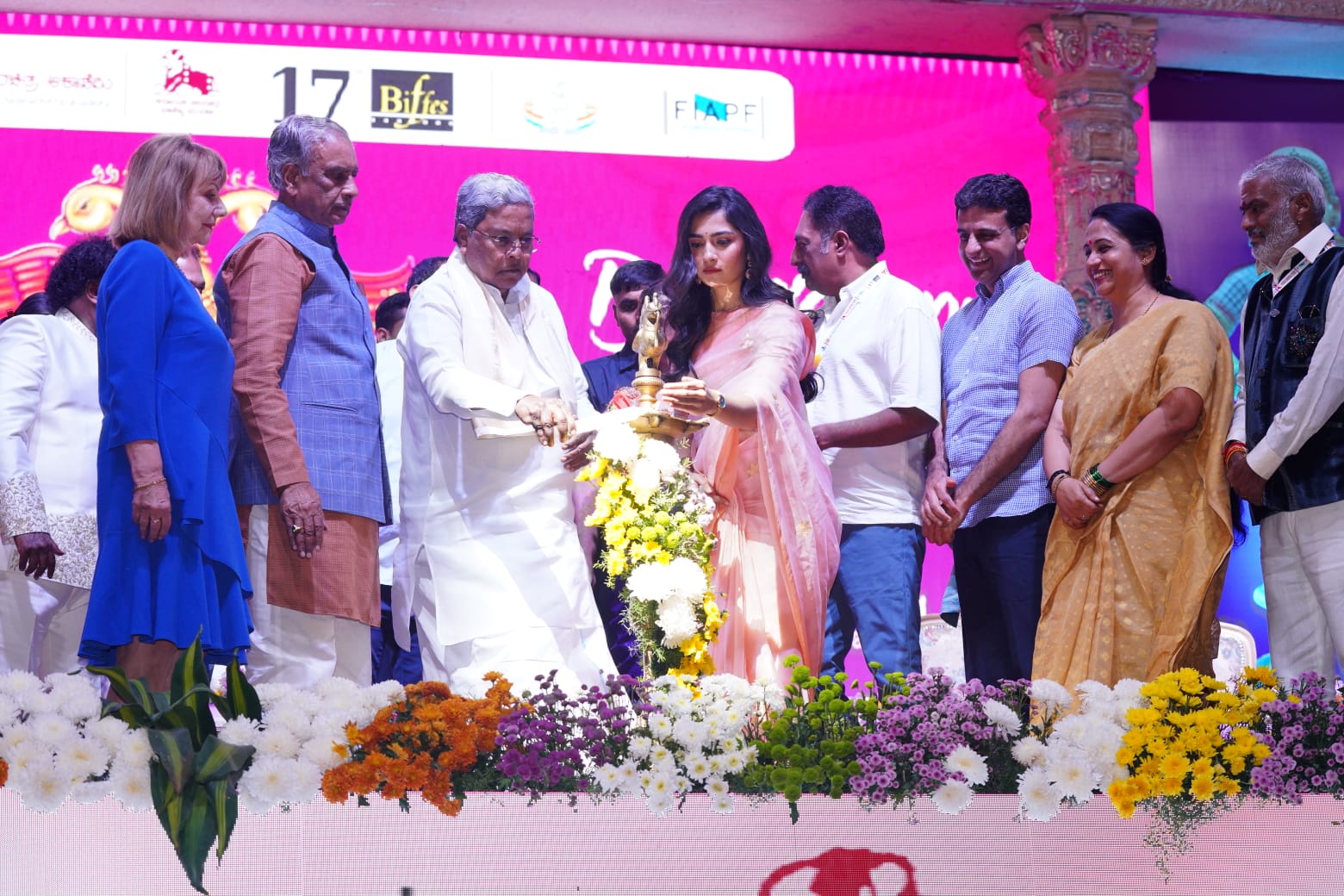 ಕರ್ನಾಟಕ ಚಲನಚಿತ್ರ ಅಕಾಡೆಮಿ ಅಧ್ಯಕ್ಷ ಸಾಧು ಕೋಕಿಲ ಅವರು ಪ್ರಾಸ್ತಾವಿಕವಾಗಿ ಮಾತನಾಡಿ ಈ 17ನೇ ಬೆಂಗಳೂರು ಅಂತಾರಾಷ್ಟ್ರೀಯ ಚಲನಚಿತ್ರೋತ್ಸವದಲ್ಲಿ ಅತ್ಯುತ್ತಮ ಚಿತ್ರಗಳನ್ನು ಆಯ್ಕೆ ಮಾಡಲಾಗಿದೆ. ಸುಮಾರು 255 ಚಿತ್ರಗಳು ಪ್ರದರ್ಶನ ಹಮಿಕೊಂಡಿದ್ದು ಅದರಲ್ಲಿ 65 ಮಹಿಳಾ ನಿರ್ದೇಶಕರ ಸಿನಿಮಾಗಳನ್ನು ಆಯ್ಕೆ ಮಾಡಲಾಗಿದೆ. ಚಿತ್ರೋತ್ಸವವನ್ನು ಮಹಿಳೆಯರಿಗೆ ಅರ್ಪಿಸಿರುವುದು ಅತ್ಯಂತ ಗೌರವಯುತ ಕಾರ್ಯವಾಗಿದೆ. ಸರ್ಕಾರ ಚಿತ್ರದ್ಯೋಮಕ್ಕೆ ಅನೇಕ ಯೋಜನೆಗಳನ್ನು ಜಾರಿಗೆ ತರುತ್ತಿದೆ ಅದರಲ್ಲಿ ಮುಖ್ಯವಾಗಿ ಮೈಸೂರಿನಲ್ಲಿ ಚಲನಚಿತ್ರ ನಗರಿ, ಅಕಾಡೆಮಿ ಕಟ್ಟಡದಲ್ಲಿ ಮಲ್ಟಿಫ್ಲೆಕ್ಸ್ ಚಿತ್ರಮಂದಿರ ಹಾಗೂ ವಾಣಿಜ್ಯ ಸಂಕೀರ್ಣ ನಿರ್ಮಿಸಲು ಯೋಜನೆ , ಕನ್ನಡ ಚಿತ್ರಗಳಿಗಾಗಿ ಓಟಿಟಿ ಸೇರಿದಂತೆ ಚಲನ ಚಿತ್ರ ಕಾರ್ಮಿಕರಿಗಾಗಿ ಅನೇಕ ಕಲ್ಯಾಣ ಕಾರ್ಯಕ್ರಮಗಳನ್ನು ಜಾರಿಗೆ ತರುತ್ತಿರುದಕ್ಕೆ ಸರ್ಕಾರಕ್ಕೆ ಧನ್ಯವಾದಗಳನ್ನು ಸಲ್ಲಿಸಿದರು.