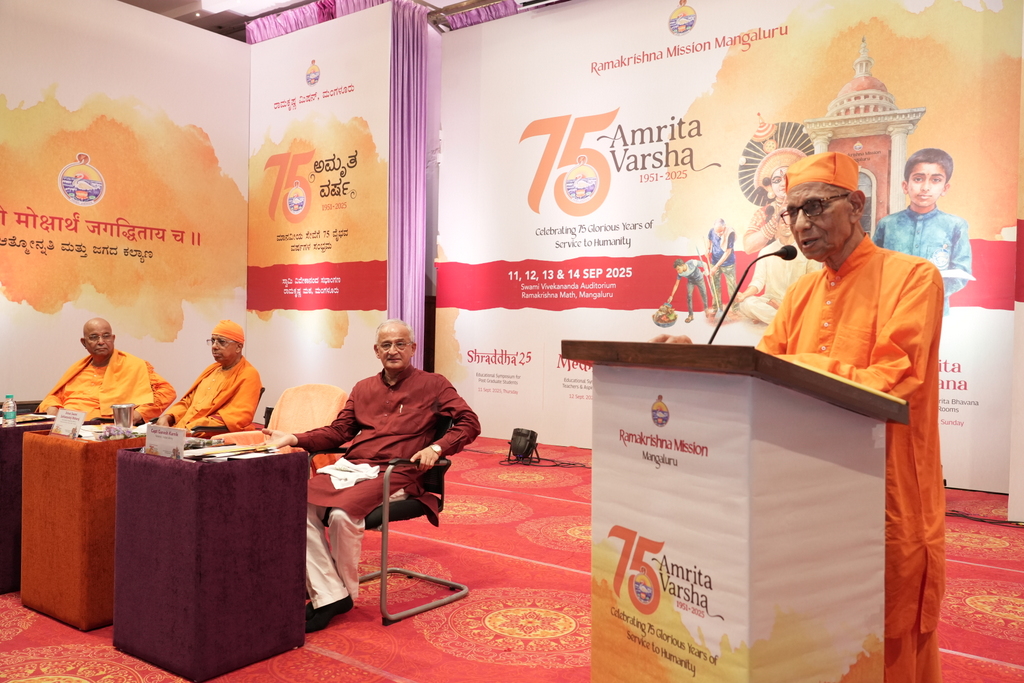 ಮಂಗಳೂರು: ರಾಮಕೃಷ್ಣ ಮಿಷನ್ ಮಂಗಳೂರಿನಲ್ಲಿ 75 ವರ್ಷಗಳನ್ನು ಪೂರೈಸಿರುವ ಹಿನ್ನೆಲೆಯಲ್ಲಿ ಮಂಗಳೂರು ರಾಮಕೃಷ್ಣ ಮಠದ ಆವರಣದಲ್ಲಿ ನಾಲ್ಕು ದಿನಗಳ ಕಾಲ ವಿವಿಧ ಕಾರ್ಯಕ್ರಮಗಳನ್ನು ಹಮ್ಮಿಕೊಳ್ಳಲಾಗಿತ್ತು. ನಾಲ್ಕನೇ ದಿನ ನಡೆದ ಸಭಾ ಕಾರ್ಯಕ್ರಮದಲ್ಲಿ ರಾಮಕೃಷ್ಣ ಮಠ ಹಾಗೂ ರಾಮಕೃಷ್ಣ ಮಿಷನ್ ಉಪಾಧ್ಯಕ್ಷರಾದ ಶ್ರೀಮತ್ ಸ್ವಾಮಿ ಸುಹಿತಾನಂದಜಿ ಮಹಾರಾಜ್ ಅಧ್ಯಕ್ಷತೆ ವಹಿಸಿದ್ದರು. ಈ ಸಂದರ್ಭದಲ್ಲಿ ಮಾತನಾಡಿದ ಅವರು "ರಾಮಕೃಷ್ಣ ಪರಮಹಂಸರಾಗಲೀ, ಶ್ರೀಮಾತೆ ಶಾರದಾದೇವಿಯವರಾಗಲಿ ಅಥವಾ ಸ್ವಾಮಿ ವಿವೇಕಾನಂದರಾಗಲೀ ಸಮಾಜದಲ್ಲಿ ಕಷ್ಟದಲ್ಲಿರುವ ಅಥವಾ ಬಡತನದಲ್ಲಿರುವವರಿಗೆ ಕರುಣೆ ತೋರಿ ಅವರ ಅಭ್ಯುದಯಕ್ಕಾಗಿ ಕೆಲಸ ಮಾಡಿದವರು ಈ ಚಿಂತನೆಗಳೊಂದಿಗೆ ಒಟ್ಟುಗೂಡಿ ಇಂದು ರಾಮಕೃಷ್ಣ ಮಠ ಹಾಗೂ ರಾಮಕೃಷ್ಣ ಮಿಷನ್ ಕೆಲಸ ಮಾಡುತ್ತಿದೆ. ಹಲವಾರು ಜನ ಸನ್ಯಾಸಿಗಳಾಗಿ ಅಥವಾ ಸ್ವಯಂಸೇವಕರಾಗಿ ಕೆಲಸ ಮಾಡುತ್ತಿದ್ದಾರೆ. ಈ ನಿಟ್ಟಿನಲ್ಲಿ ನಾವು ತಾನು, ಮನ ಧನ ಪೂರ್ವಕವಾಗಿ ಇನ್ನಷ್ಟು ಉತ್ತಮ ರೀತಿಯಲ್ಲಿ ಸೇವಾ ಕಾರ್ಯಗಳಲ್ಲಿ ತೊಡಗಿಕೊಳ್ಳೋಣ ಈ ಮೂಲಕ ನಮ್ಮ ಜೀವನವನ್ನು ಪಾವನಗೊಳಿಸಿ ಭಗವಂತನ ಕೃಪೆಗೆ ಪಾತ್ರರಾಗೋಣ" ಎಂದು ಹೇಳಿದರು.
