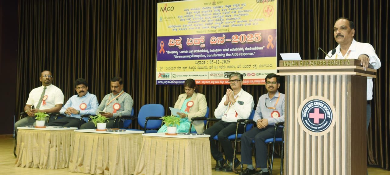 ಮಂಗಳೂರು: ಜಿಲ್ಲಾ ಕಾನೂನು ಸೇವೆಗಳ ಪ್ರಾಧಿಕಾರ ದಕ್ಷಿಣ ಕನ್ನಡ ಜಿಲ್ಲೆ, ದಕ್ಷಿಣ ಕನ್ನಡ ಜಿಲ್ಲಾಡಳಿತ, ಜಿಲ್ಲಾ ಪಂಚಾಯತ್, ಜಿಲ್ಲಾ ಆರೋಗ್ಯ ಮತ್ತು ಕುಟುಂಬ ಕಲ್ಯಾಣ ಇಲಾಖೆ, ಜಿಲ್ಲಾ ಏಡ್ಸ್ ನಿಯಂತ್ರಣ ಮತ್ತು ತಡೆಗಟ್ಟುವ ಘಟಕ, ಇಂಡಿಯನ್ ರೆಡ್ ಕ್ರಾಸ್ ಸೊಸೈಟಿ ಮಂಗಳೂರು, ಯೆನಪೋಯ ನರ್ಸಿಂಗ್ ಕಾಲೇಜು, ಫಾದರ್ ಮುಲ್ಲರ್ ನರ್ಸಿಂಗ್ ಕಾಲೇಜು, ಜಿಲ್ಲಾ ವಕೀಲರ ಸಂಘ ದ.ಕ ಹಾಗೂ ರಾಷ್ಟ್ರೀಯ ಸೇವಾ ಯೋಜನಾ ಘಟಕ ದ.ಕ \ಮಂಗಳೂರು ಇವರ ಸಹಯೋಗದೊಂದಿಗೆ ಜಿಲ್ಲಾ ಮಟ್ಟದ ವಿಶ್ವ ಏಡ್ಸ್ ದಿನ 2025 ಕಾರ್ಯಕ್ರಮದ ಪ್ರಯುಕ್ತ ದಿನಾಂಕ: 05-12-2025ರಂದು ಜಿಲ್ಲಾ ಕಾರ್ಯಕ್ರಮವನ್ನು ಇಂಡಿಯನ್ ರೆಡ್ಕ್ರಾಸ್ ಸೊಸೈಟಿ ಸಭಾಂಗಣ ಮಂಗಳೂರು ಇಲ್ಲಿ ಹಮ್ಮಿ ಕೊಂಡಿದ್ದು, ಸದರಿ ಕಾರ್ಯಕ್ರಮದ ಉದ್ಘಾಟನೆಯನ್ನು ಶ್ರೀಮತಿ ಜೈಬುನ್ನಿಸಾ ಬಿ.ಕಾಂ ಎಲ್.ಎಲ್.ಬಿ, ಹಿರಿಯ ಸಿವಿಲ್ ನ್ಯಾಯಾಧೀಶರು ಮತ್ತು ಸದಸ್ಯಕಾರ್ಯದರ್ಶಿಗಳು, ಜಿಲ್ಲಾ ಕಾನೂನು ಸೇವೆಗಳ ಪ್ರಾಧಿಕಾರದ.ಕ ಮಂಗಳೂರು ನೆರವೇರಿಸಿದರು. ಕಾರ್ಯಕ್ರಮವನ್ನು ಉದ್ದೇಶಿಸಿ ಮಾತನಾಡುತ್ತಾ, ಹೆಚ್.ಐ.ವಿ ಎಂಬುದು ಒಂದು ಸೂಕ್ಷ್ಮ ರೋಗಾಣುವಾಗಿದ್ದು, ಒಮ್ಮೆ ವ್ಯಕ್ತಿ ಹೆಚ್.ಐ.ವಿ ಸೋಂಕಿಗೆ ಒಳಗಾದಲ್ಲಿ, ಸಮಾಜ ಆತನ್ನು ಸೋಂಕಿತನೆಂದು, ಸಮಾಜದಲ್ಲಿ ತಾರತಮ್ಯವನ್ನು ಮಾಡುವುದರಿಂದ ಆತನು ಬದುಕುವ ಹಕ್ಕನ್ನು ಕಳೆದುಕೊಳ್ಳುವಂತಾಗಿದೆ. ಆದ್ದರಿಂದ ಹೆಚ್.ಐ.ವಿ ನಿಯಂತ್ರಣ ಮತ್ತು ತಡೆ ಕಾಯ್ದೆ 2017 ರ ಪ್ರಕಾರ ಸೋಂಕಿತರಾಗಿರುವ ವ್ಯಕ್ತಿಗಳ ಮಾನವೀಯ ಮತ್ತು ಸಂವಿಧಾನಿಕ ಹಕ್ಕುಗಳ ರಕ್ಷಣೆಯನ್ನು ಒದಗಿಸುತ್ತದೆ. ಯಾವುದೇ ವ್ಯಕ್ತಿಯ ಹೆಚ್.ಐ.ವಿ ಪರೀಕ್ಷೆ ವೈದ್ಯಕೀಯ ಚಿಕಿತ್ಸೆ ಅಥವಾ ಸಂಶೋಧನೆಯನ್ನು ಆತನ ಅನುಮತಿ ಇಲ್ಲದೆ ನಡೆಸುವಂತಿಲ್ಲ. ಹೆಚ್.ಐ.ವಿ ಸೋಂಕಿತರು/ ಭಾದಿತರ ಬಗ್ಗೆ ಯಾವುದೇ ತಾರತಾಮ್ಯ, ಕಳಂಕ ಬೇಡ, ಅವರಿಗೂ ಸಮಾಜದಲ್ಲಿ ಎಲ್ಲರೊಂದಿಗೆ ಬಾಳಿ ಬದುಕುವ ಅವಕಾಶವನ್ನು ನೀಡೋಣ ಎಂದರು.