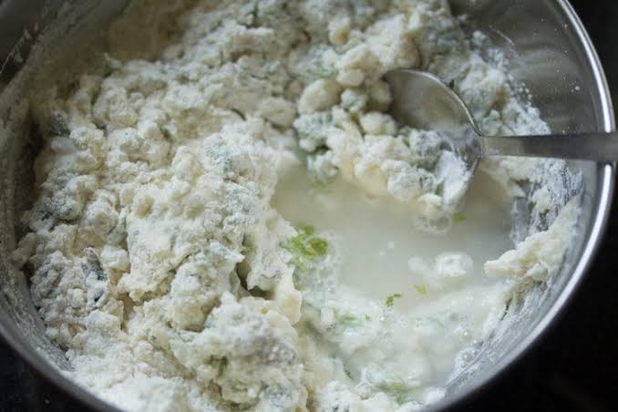 ಮೊದಲಿಗೆ ಒಂದು ಪಾತ್ರೆಗೆ ಮೈದಾ ಹಿಟ್ಟು, ಸಕ್ಕರೆ, ಉಪ್ಪು, ಜೀರಿಗೆ, ತುರಿದ ಶುಂಠಿ, ಕರಿಬೇವು, ಕೊತ್ತಂಬರಿ ಸೊಪ್ಪು, ಸಣ್ಣದಾಗಿ ಕತ್ತರಿಸಿದ ಮಾಡಿದ ಹಸಿಮೆಣಸಿನಕಾಯಿ, ಅಡುಗೆ ಸೋಡಾ, ಅಕ್ಕಿ ಹಿಟ್ಟು, ಮೊಸರನ್ನು ಸೇರಿಸಿ ಅದಕ್ಕೆ ಸ್ವಲ್ಪ ನೀರನ್ನು ಸೇರಿಸಿ ಬೋಂಡ ಹಿಟ್ಟಿನ ಹದಕ್ಕೆ ಕಲಸಿಕೊಳ್ಳಿ.
