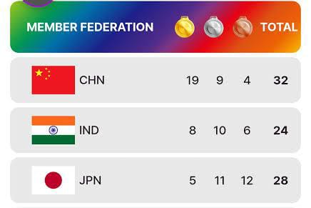 ದಕ್ಷಿಣ ಕೊರಿಯಾ: ಭಾರತದ ಅಥೀಟ್ಗಳು 26ನೇ ಏಷ್ಯನ್ ಅಥ್ಲೆಟಿಕ್ಸ್ನಲ್ಲಿ ಒಟ್ಟು 24 ಪದಕಗಳೊಂದಿಗೆ 2 ನೇ ಸ್ಥಾನಕ್ಕೆ ತೃಪ್ತಿಪಟ್ಟು ಅಭಿಯಾನ ಮುಗಿಸಿದರು. ಕೂಟದ ಅಂತಿಮ ದಿನವಾದ ಶನಿವಾರ ಭಾರತ ಅಥೀಟ್ಗಳು ಮೂರು ಬೆಳ್ಳಿ ಮತ್ತು ಮೂರು ಕಂಚಿನ ಪದಕಗಳನ್ನು ಕೊರಳಿಗೇರಿಸಿಕೊಂಡರು. ಈ ಕೂಟದಲ್ಲಿ ಭಾರತವು ಒಟ್ಟು 8 ಚಿನ್ನ, 10 ಬೆಳ್ಳಿ ಮತ್ತು 6 ಕಂಚಿನ ಪದಕ ಗಳಿಸಿತು. ಹೋದ ಸಲ ಭಾರತ ತಂಡವು 6 ಚಿನ್ನ ಗೆದ್ದಿತ್ತು. ಈ ಬಾರಿ ಎರಡು ಹೆಚ್ಚು ಬಂಗಾರ ಪದಕಗಳು ಒಲಿದಿವೆ. ಆದರೆ ಒಟ್ಟು ಪದಕಗಳಿಕೆಯು ಹೋದ ಸಲಕ್ಕಿಂತ (27) ಕಡಿಮೆಯಾಗಿದೆ.