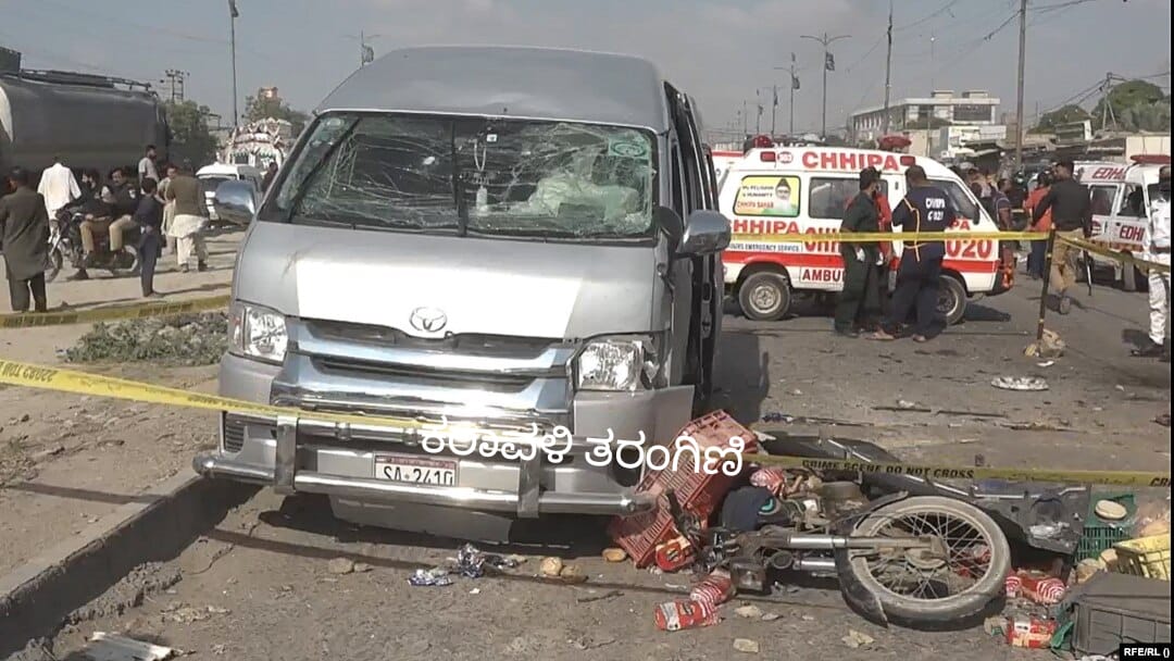 ಕರಾಚಿ: ಬಲೂಚ್ ಲಿಬರೇಶನ್ ಆರ್ಮಿ (ಬಿಎಲ್ಎ) ಪ್ರತ್ಯೇಕತಾವಾದಿ ಗುಂಪು ಈ ಸ್ಫೋಟದ ಜವಾಬ್ದಾರಿಯನ್ನು ವಹಿಸಿಕೊಂಡಿದೆ. ಪಾಕಿಸ್ತಾನದ ಅತಿದೊಡ್ಡ ಮತ್ತು ಜನನಿಬಿಡ ವಾಯುಯಾನ ಕೇಂದ್ರವಾದ ಜಿನ್ನಾ ಅಂತಾರಾಷ್ಟ್ರೀಯ ವಿಮಾನ ನಿಲ್ದಾಣದಿಂದ ಚೀನಾದ ಎಂಜಿನಿಯರ್ಗಳು ಮತ್ತು ಹೂಡಿಕೆದಾರರ ಬೆಂಗಾವಲು ಪಡೆಯನ್ನು ಗುರಿಯಾಗಿಸಿಕೊಂಡು ಆತ್ಮಾಹುತಿ ದಾಳಿ ನಡೆಸಲಾಗಿದೆ ಎಂದು ಬಿಎಲ್ಎ ಹೇಳಿಕೊಂಡಿದೆ