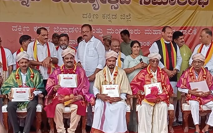 ಮಂಗಳೂರು: ನಗರದ ನೆಹರೂ ಮೈದಾನದಲ್ಲಿ ಆಯೋಜನೆಗೊಂಡಿದ್ದ ದ.ಕ. ಜಿಲ್ಲಾ ಮಟ್ಟದ ಕರ್ನಾಟಕ ರಾಜ್ಯೋತ್ಸವ ಕಾರ್ಯಕ್ರಮದಲ್ಲಿ 59 ಸಾಧಕರು, 24 ಸಂಸ್ಥೆಗಳಿಗೆ ದ.ಕ. ಜಿಲ್ಲಾ ಪ್ರಶಸ್ತಿ ಪ್ರಧಾನ ಮಾಡಲಾಯಿತು.