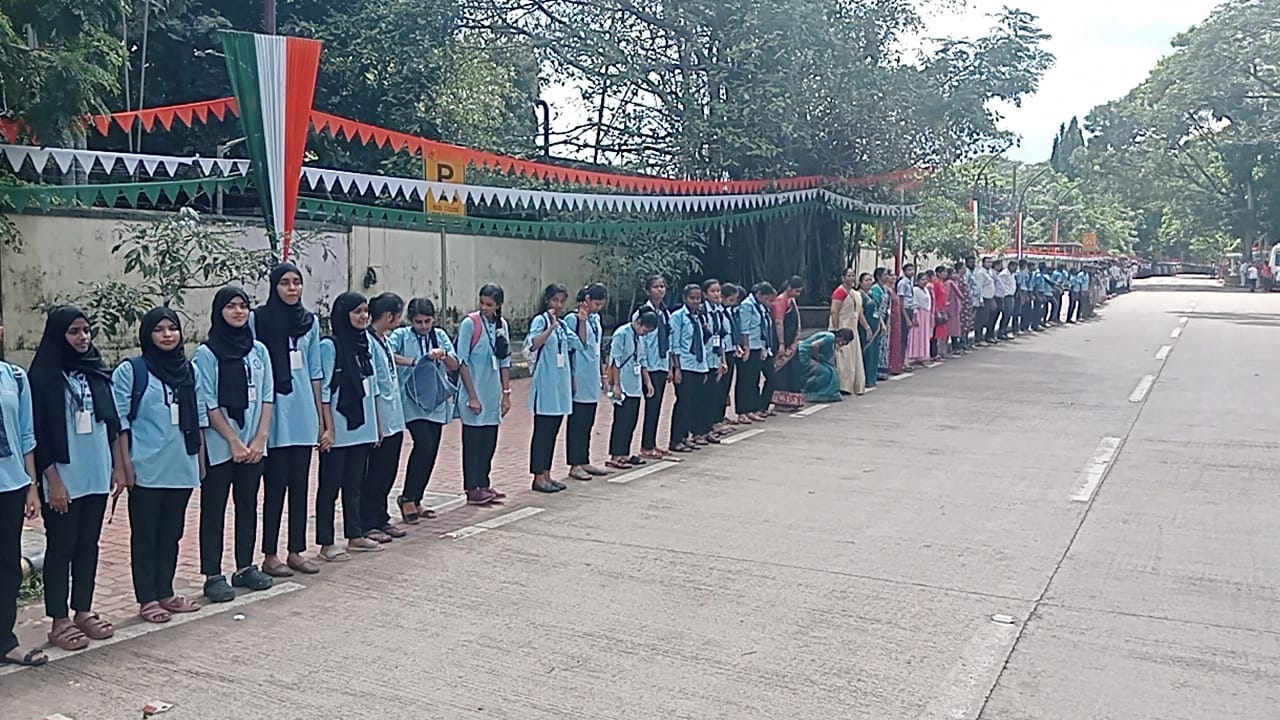 ಬೆಳಗ್ಗೆ 9.30ಕ್ಕೆ ಸರಕಾರಿ ಅಧಿಕಾರಿಗಳು, ಜನಪ್ರತಿನಿಧಿಗಳು, ಶಾಲಾವಿದ್ಯಾರ್ಥಿಗಳನ್ನು ಒಳಗೊಂಡ ಬೃಹತ್ ಮಾನವ ಸರಪಳಿ ರಚಿಸಲಾಯಿತು.