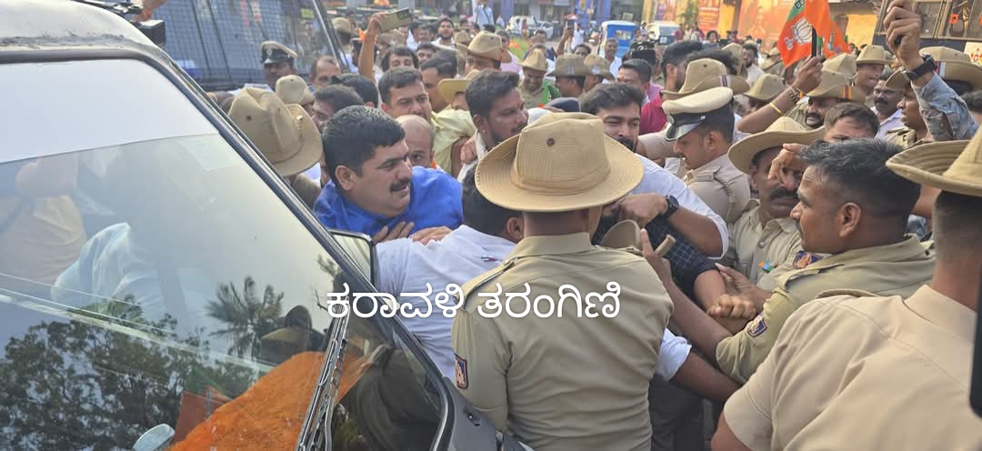ಮಂಗಳೂರು: ಕೇಂದ್ರ ಗೃಹ ಸಚಿವ ಅಮಿತ್ ಶಾ ಮಾತನ್ನು ತಿರುಚಿದ ಆರೋಪದಲ್ಲಿ ಕಾಂಗ್ರೆಸ್ ವಿರುದ್ಧ ಮತ್ತು ಮಾಜಿ ಸಚಿವ, ವಿಧಾನ ಪರಿಷತ್ ಸದಸ್ಯ ಸಿ.ಟಿ ರವಿಯನ್ನು ಬಂಧಿಸಿದ ರಾಜ್ಯ ಕಾಂಗ್ರೆಸ್ ಸರಕಾರದ ವಿರುದ್ಧ ನಗರದ ಮಲ್ಲಿಕಟ್ಟೆ ಸರ್ಕಲ್ ಬಳಿ ಇಂದು ಪ್ರತಿಭಟನೆ ನಡೆಸಿ, ಕಾಂಗ್ರೆಸ್ ಕಚೇರಿಗೆ ಮುತ್ತಿಗೆ ಹಾಕಲು ಯತ್ನಿಸಿದ ಶಾಸಕ ವೇದವ್ಯಾಸ ಕಾಮತ್ ಸಹಿತ ದ.ಕ.ಬಿಜೆಪಿ ಯುವ ಮೋರ್ಚಾದ ನೂರಾರು ಕಾರ್ಯಕರ್ತರನ್ನು ಪೊಲೀಸರು ವಶಕ್ಕೆ ಪಡೆದಿದ್ದಾರೆ.