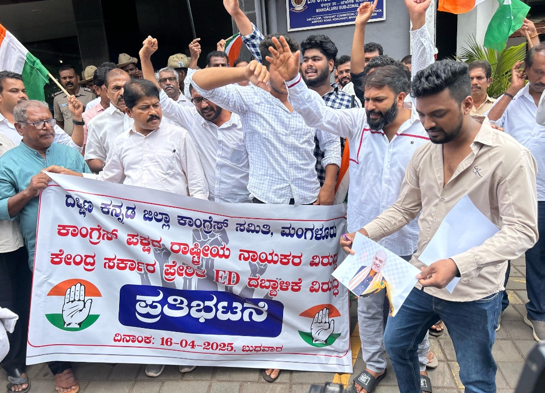 ಈ ಸಂದರ್ಭ ಮಾತನಾಡಿದ ಮಾಜಿ ಸಚಿವ ರಮಾನಾಥ ರೈ, ಕೇಂದ್ರದ ಬಿಜೆಪಿ ಸರ್ಕಾರ ಜಾರಿ ನಿರ್ದೇಶನಾಲಯದ ಮೂಲಕ ದಬ್ಬಾಳಿಕೆ ನಡೆಸಲು ಹೊರಟಿದೆ. ಅದಕ್ಕೆ ಕಾಂಗ್ರೆಸ್ ದೇಶವ್ಯಾಪಿ ಹೋರಾಟ ಮಾಡುವ ಮೂಲಕ ತಕ್ಕ ಉತ್ತರ ಕೊಟ್ಟಿದ್ದೇವೆ. ಈ ಹಿಂದೆಯೂ ಇಡಿ ಮೂಲಕ ದಾಳಿ ಮಾಡಿಸಿ ಬಿಜೆಪಿಯೇತರ ನಾಯಕರನ್ನು ಹೆದರಿಸುವ ಕೆಲಸ ಮಾಡಿತ್ತು. ಯಾರು ಇಡಿ ಮೇಲೆ ಭಯಪಟ್ಟು ಬಿಜೆಪಿ ಸೇರಿದ್ದಾರೋ ಅವರ ಮೇಲಿನ ಎಲ್ಲ ಕೇಸ್ಗಳನ್ನು ಮುಚ್ಚಿ ಹಾಕಲಾಗಿದೆ. ಇಡಿ ದಾಳಿಯ ಭೀತಿಯಿಂದ ಬಿಜೆಪಿ ಸೇರಿದವರು ವಾಷಿಂಗ್ ಮಿಷಿನ್ಗೆ ಹಾಕಿದಂತೆ ಸ್ವಚ್ಛ ಆಗುತ್ತಾರೆ ಎಂದು ಲೇವಡಿ ಮಾಡಿದರು.ಕೇಂದ್ರ ಸರ್ಕಾರ ಇಡಿ ಎದುರಿಗಿಟ್ಟು ರಾಜಕೀಯ ನಡೆಸುತ್ತಿದೆ. ಸೋನಿಯಾ ಗಾಂಧಿ ಮತ್ತು ರಾಹುಲ್ ಗಾಂಧಿ ಅವರ ಮೇಲೆ ಸುಳ್ಳು ದೋಷಾರೋಪ ಪಟ್ಟಿ ಸಲ್ಲಿಸಿರುವುದು ಸಂಪೂರ್ಣ ರಾಜಕೀಯ ಪ್ರೇರಿತ. ಇದರ ವಿರುದ್ಧ ನಾವು ಬೀದಿಗಿಳಿದು ಹೋರಾಟ ನಡೆಸಲಿದ್ದೇವೆ. ಅಗತ್ಯ ಬಿದ್ದರೆ ಪ್ರಾಣ ಕೊಡಲೂ ಸಿದ್ಧ ಎಂದು ರಮಾನಾಥ ರೈ ಗುಡುಗಿದರು.