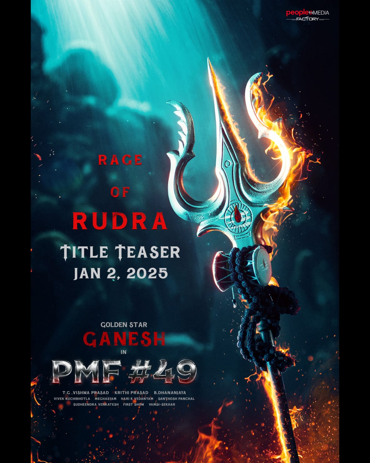 ತೆಲುಗು ನಿರ್ಮಾಪಕ ಟಿಜಿ ವಿಶ್ವ ಪ್ರಸಾದ್ ನೇತೃತ್ವದ ಪೀಪಲ್ ಮೀಡಿಯಾ ಫ್ಯಾಕ್ಟರಿ ಇದೀಗ ಸ್ಯಾಂಡಲ್ವುಡ್ನಲ್ಲಿ ಗೋಲ್ಡನ್ ಸ್ಟಾರ್ ಗಣೇಶ್ ಅವರ ಸಿನಿಮಾ ನಿರ್ಮಾಣ ಮಾಡುತ್ತಿದೆ. ಇದೀಗ ಈ #PMF49ನೇ ಪ್ರಾಜೆಕ್ಟ್ನ "ರೇಜ್ ಆಫ್ ರುದ್ರ" ಪೋಸ್ಟರ್ ಅನಾವರಣಗೊಂಡಿದೆ. ತೆಲುಗಿನಲ್ಲಿ ಈಗಾಗಲೇ ಬ್ಲಾಕ್ಬಸ್ಟರ್ ಹಿಟ್ಗಳನ್ನು ನೀಡಿರುವ ಈ ಪೀಪಲ್ ಮೀಡಿಯಾ ಫ್ಯಾಕ್ಟರಿ ಸಂಸ್ಥೆ, ಈಗ ಈ ಬಹು ನಿರೀಕ್ಷಿತ ಸಿನಿಮಾ ಮೂಲಕ ಕನ್ನಡ ಚಿತ್ರರಂಗವನ್ನು ಮತ್ತೊಂದು ಮಜಲಿಗೆ ಕೊಂಡೊಯ್ಯಲು ಸಜ್ಜಾಗಿದೆ.