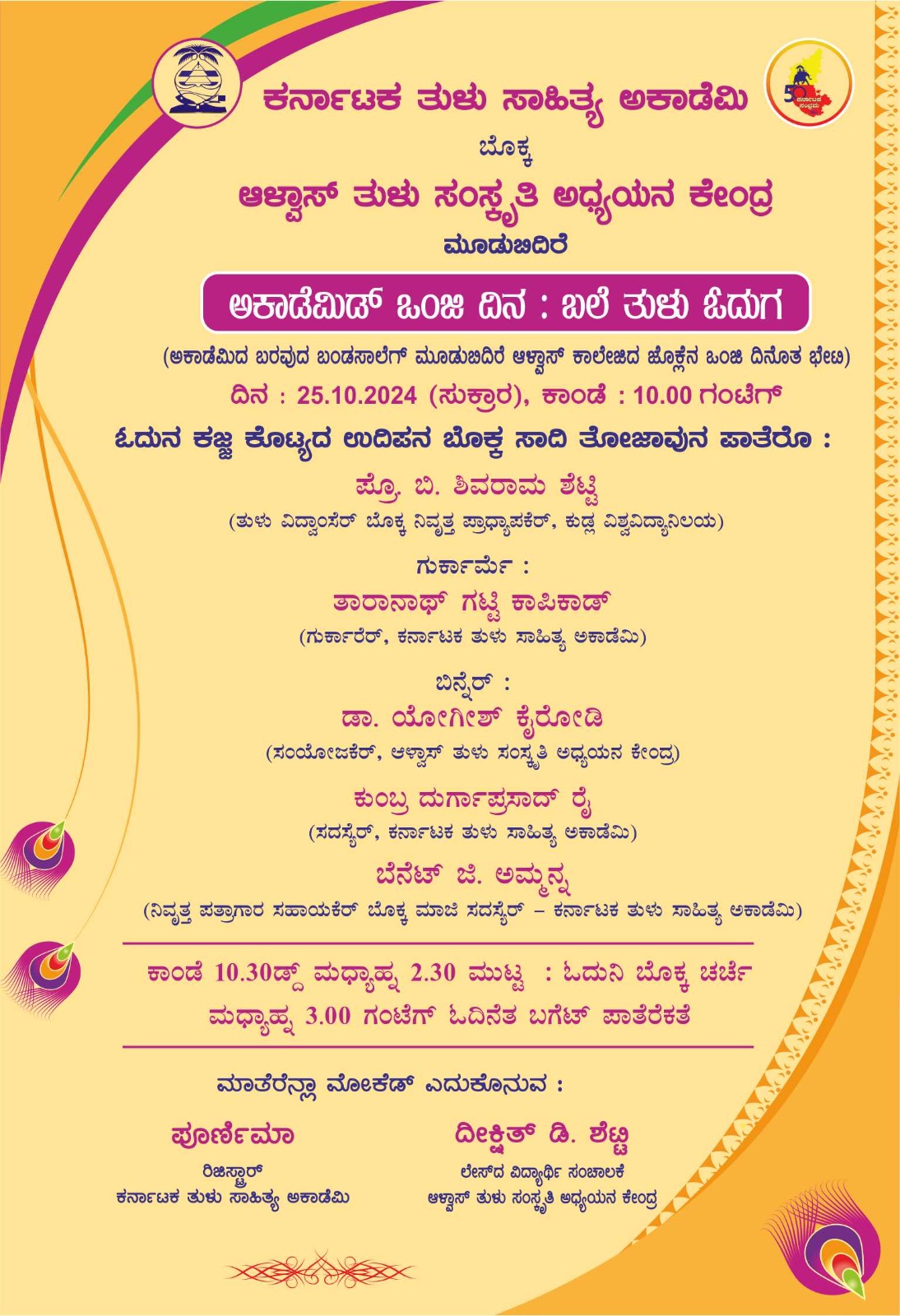 ಅಕಾಡೆಮಿಯ ಗ್ರಂಥಾಲಯದಲ್ಲಿ ತುಳುವಿಗೆ ಸಂಬಂಧಿಸಿದ ತುಳು ಭಾಷೆಯ ಸುಮಾರು 2500 ಕೃತಿಗಳಿವೆ, ಅದೇ ರೀತಿಯಲ್ಲಿ ತುಳುವಿಗೆ ಸಂಬಂಧಿಸಿದ ಕನ್ನಡ ಭಾಷೆಯಲ್ಲಿ ಪ್ರಕಟವಾಗಿರುವ ಸುಮಾರು 2000 ಕೃತಿಗಳು ಲಭ್ಯ ಇದ್ದು, ತುಳು ಸಾಹಿತ್ಯ , ತುಳು ಭಾಷೆಯ ಚರಿತ್ರೆ, ತುಳು ಸಂಸ್ಕೃತಿ, ತುಳು ಜ್ಞಾನಭಂಡಾರದ ಅಗಾಧತೆಯ ಅರಿವನ್ನು ವಿದ್ಯಾರ್ಥಿ ಯುವಜನರಿಗೆ ಮೂಡಿಸಬೇಕೆನ್ನುವ ಹಿನ್ನೆಲೆಯಲ್ಲಿ "ಅಕಾಡೆಮಿಡ್ ಒಂಜಿ ದಿನ , ಬಲೆ ತುಳು ಓದುಗ" ಕಾರ್ಯಕ್ರಮವನ್ನು ಆಯೋಜಿಸಲಾಗಿದೆ.