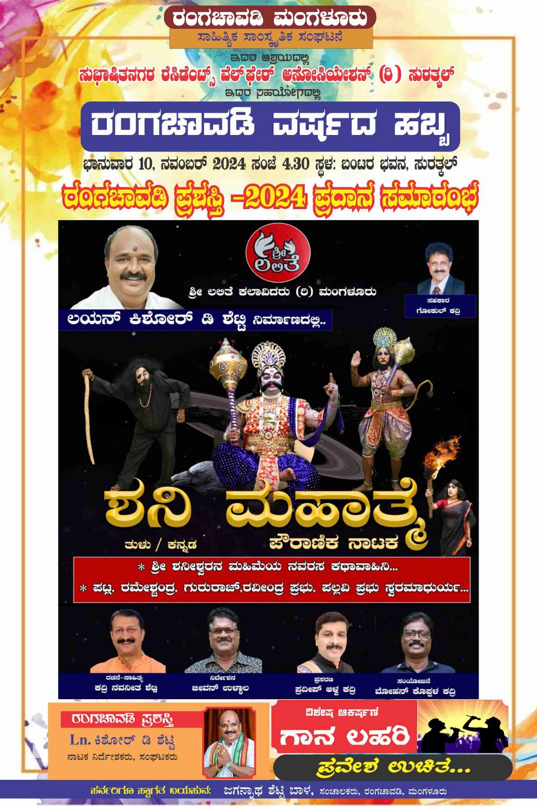 ಬಳಿಕ ಕಲಾವಿದರಿಂದ ಗಾನ ಲಹರಿ ಮತ್ತು ಶ್ರೀ ಲಲಿತೆ ನಾಟಕ ತಂಡದಿಂದ "ಶನಿ ಮಹಾತ್ಮೆ" ನಾಟಕ ಪ್ರದರ್ಶನಗೊಳ್ಳಲಿದೆ ಎಂದು ರಂಗಚಾವಡಿಯ ಪ್ರಕಟನೆ ತಿಳಿಸಿದೆ.