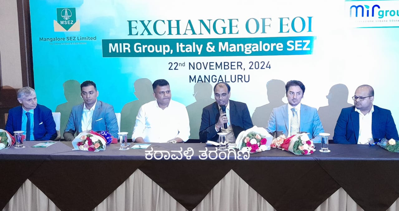 ಮಂಗಳೂರು: ನಗರದ ಓಷನ್ ಪರ್ಲ್ ಹೋಟೆಲ್ ಸಭಾಂಗಣದಲ್ಲಿ ಸಂಸದ ಕ್ಯಾಪ್ಟನ್ ಬ್ರಿಜೇಶ್ ಚೌಟ ಅವರ ಸಮಕ್ಷಮದಲ್ಲಿ ಎಂಎಸ್ಇಝಡ್ ಸಿಇಒ ಸೂರ್ಯನಾರಾಯಣ ರಾವ್ ಹಾಗೂ ಮೀರ್ ಗ್ರೂಪ್ನ ಮುಖ್ಯಸ್ಥ ರಫೇಲೆ ಮರಾಝೊ ಅವರು ಒಪ್ಪಂದ ಪತ್ರಗಳನ್ನು ವಿನಿಮಯ ಮಾಡಿಕೊಂಡರು.ಈ ಸಂದರ್ಭದಲ್ಲಿ ಮಾತನಾಡಿದ ಚೌಟ "ಚುನಾವಣೆ ಸಂದರ್ಭದಲ್ಲಿ ನೀಡಿದ ಮಾತಿನಂತೆ ಸ್ಥಳೀಯರಿಗೆ ಉದ್ಯೋಗ ಅವಕಾಶಗಳು ದೊರೆಯಬೇಕು ಅಲ್ಲದೆ, ಊರಿನ ಯುವಕರು ಉದ್ಯೋಗಕ್ಕಾಗಿ ಬೇರೆ ಕಡೆ ಹೋಗದೆ ಜಿಲ್ಲೆಯಲ್ಲಿ ಕೆಲಸ ನಿರ್ವಹಿಸಲು ಅನುಕೂಲವಾಗುವಂತೆ ಜಿಲ್ಲೆಯಲ್ಲೇ ಉದ್ಯಮಗಳನ್ನು ಸ್ಥಾಪಿಸಲು ಹುಟ್ಟೂರಿನಿಂದ ದೂರ ಹೋಗಿರುವ ಸ್ಥಳೀಯರನ್ನು ಪ್ರೇರೇಪಿಸುವ ಕಾರ್ಯ ಕೈಗೊಂಡಿದ್ದು, ಅದರ ಭಾಗವಾಗಿ ಮಂಗಳೂರು ಜಿಲ್ಲೆಗೆ ಬಂಡವಾಳವನ್ನು ತರುವ ಉದ್ದೇಶದಿಂದ. “ಬ್ಯಾಕ್ ಟು ಊರು” ಎಂಬ ಉಪಕ್ರಮ ದೊಂದಿಗೆ ಜಿಲ್ಲೆಗೆ ಅಭಿವೃದ್ಧಿಯ ಬಗ್ಗೆ ಉತ್ಸುಕರಾಗಿದ್ದೇವೆ. ಇಂದು ಇಟಲಿಯ ಕಂಪನಿ ಮಂಗಳೂರಿನ ಎಸ್ ಈ ಝಡ್ ನಲ್ಲಿ ಹೂಡಿಕೆ ಮಾಡಲು ಮುಂದಾಗಿದೆ ಎಂದರು. ಅಲ್ಲದೆ ಮಂಗಳೂರು ಮೂಲದ ನಿತಿಕ್ ರತ್ನಾಕರ್ ಅವರು ಮೀರ್ ಗ್ರೂಪ್ನ ಕಾರ್ಯ ನಿರ್ವಾಹಕ ನಿರ್ದೇಶಕರಾಗಿದ್ದು,ಅವರು ಮಂಗಳೂರಿನಲ್ಲಿ ಇಟಲಿ ಕಂಪನಿ ಹೂಡಿಕೆಗೆ ಬಲವಾದ ಬೆಂಬಲ ನೀಡಿದ್ದಾರೆ. ಈ ಮೂಲಕ 1500 ಕೋಟಿ ರೂ. ನಷ್ಟು ಹೂಡಿಕೆಯಾಗಲಿದ್ದು, ಜಿಲ್ಲೆಯಲ್ಲಿ 500-600 ಮಂದಿಗೆ ಉದ್ಯೋಗಾವಕಾಶ ಲಭಿಸಲಿದೆ ಎಂದರು.