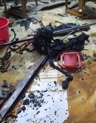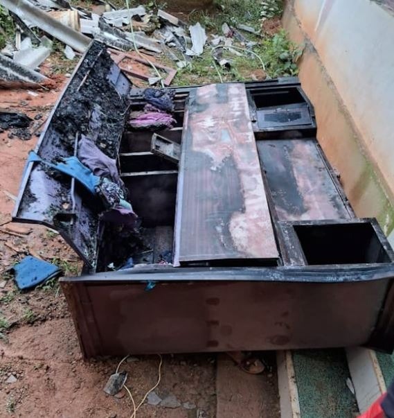 ಮಧ್ಯರಾತ್ರಿ ವೇಳೆ ಮನೆಯೊಳಗಡೆ ಭಾರೀ ಸ್ಫೋಟದ ಸದ್ದು ಕೇಳಿಸಿದೆ. ಸ್ಫೋಟದ ತೀವ್ರತೆಗೆ ತಾರಸಿ ಮನೆಯ ಮೇಲ್ಭಾಗದ ಸಿಮೆಂಟ್ ಶೀಟ್ ಮೇಲ್ಛಾವಣಿ ಸಂಪೂರ್ಣ ಹಾರಿ ಹೋಗಿದೆ. ತಾಯಿ ,ಮಕ್ಕಳು ಮಲಗಿದ್ದ ಕೊಠಡಿ, ಮಂಚ, ಕಿಟಕಿ ಸಂಪೂರ್ಣ ಛಿಧ್ರಗೊಂಡು ಸುಟ್ಟು ಕರಕಲಾಗಿದೆ.