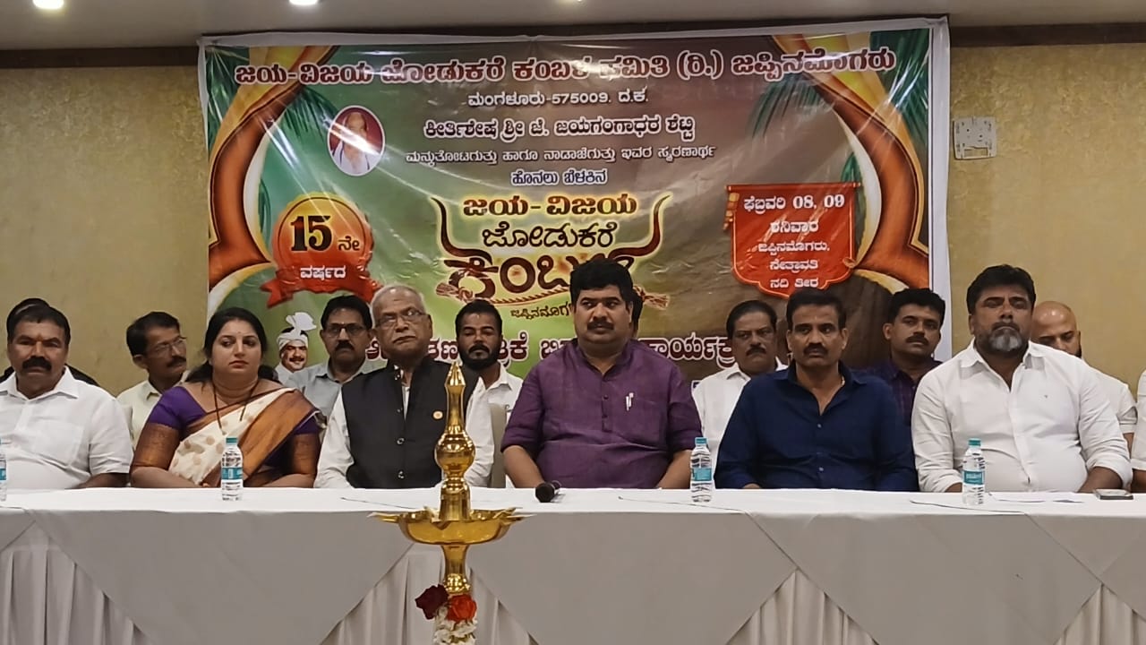 ಮಂಗಳೂರು: ಕರಾವಳಿ ಕರ್ನಾಟಕ ಭಾಗದ ಸಾಂಪ್ರದಾಯಿಕ ಜನಪದ ಕ್ರೀಡೆಯಾಗಿರುವ ಕಂಬಳವನ್ನು ಉಳಿಸಬೇಕು ಮತ್ತು ಮುಂದಿನ ಪೀಳಿಗೆಗೆ ಪರಿಚಯಿಸಬೇಕು ಎಂಬ ಸದುದ್ದೇಶದಿಂದ ಜಯ-ವಿಜಯ ಜೋಡುಕರೆ ಸಮಿತಿ ಜಪ್ಪಿನಮೊಗರು ಮಂಗಳೂರು ಇವರ ನೇತೃತ್ವದಲ್ಲಿ ಮನ್ಕುತೋಟಗುತ್ತು ಮತ್ತು ನಾಡಾಜೆಗುತ್ತು ಕೀರ್ತಿಶೀಷ ಜಿ. ಜಯಗಂಗಾಧರ ಶೆಟ್ಟಿಯವರ ಸ್ಮರಣಾರ್ಥ 15ನೇ ವರ್ಷದ ಹೊನಲು ಬೆಳಕಿನ ಜಯ-ವಿಜಯ ಜೋಡುಕರೆ ಕಂಬಳವು ಜಪ್ಪಿನಮೊಗರು ನೇತ್ರಾವತಿ ನದಿ ತೀರದಲ್ಲಿ ದಿನಾಂಕ 08.02.2025ನೇ ಶನಿವಾರದಂದು ನಡೆಯಲಿದೆ ಎಂದು ಗೌರವಾಧ್ಯಕ್ಷರಾದ ಮಂಗಳೂರು ವಿಧಾನಸಬಾ ಶಾಸಕ ವೇದವ್ಯಾಸ ಕಾಮತ್ ಹೇಳಿದರು.
