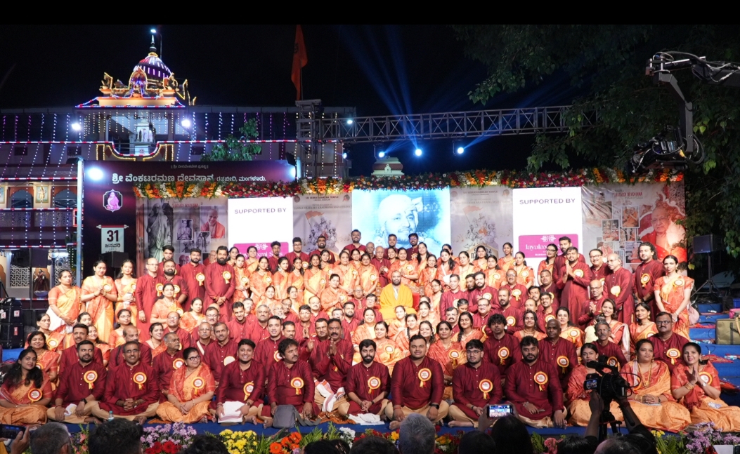 ಮಂಗಳೂರು ರಥಬೀದಿಯಲ್ಲಿ ನಿರ್ಮಿಸಲಾಗಿದ್ದ ಭವ್ಯ ವೇದಿಕೆಯಲ್ಲಿ ಖ್ಯಾತ ಗಾಯಕರಾದ ಪುತ್ತೂರು ನರಸಿಂಹ ನಾಯಕ್, ಶಂಕರ್ ಶ್ಯಾನುಭೋಗ್, ಪುತ್ತೂರು ಪಾಂಡುರಂಗ ನಾಯಕ್, ಬಾಲಚಂದ್ರ ಪ್ರಭು, ರಘುನಂದನ್ ಭಟ್, ಪ್ರಿಯಾ ಪೈ, ಮಹಾಲಕ್ಷ್ಮಿ ಶೆಣೈ ಸಹಿತ ಭಾರತದ ವಿವಿಧ ರಾಜ್ಯಗಳಿಂದ ಆಗಮಿಸಿದ ನೂರು ಜನ ಗಾಯಕ, ಗಾಯಕಿಯರು ಏಕಕಂಠದಲ್ಲಿ ಹತ್ತು ಭಜನಾ ಹಾಡುಗಳನ್ನು ಹಾಡಿದರು.