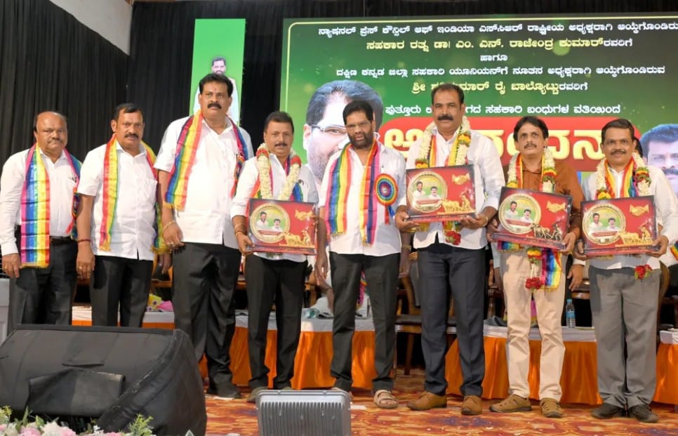 ನ್ಯಾಷನಲ್ ಪ್ರೆಸ್ ಕೌನ್ಸಿಲ್ ಆಫ್ ಇಂಡಿಯಾ ಎಸ್.ಸಿ.ಆರ್. ರಾಷ್ಟ್ರೀಯ ಅಧ್ಯಕ್ಷರಾಗಿ ಆಯ್ಕೆಗೊಂಡ ಡಾ. ಎಂ. ಎನ್. ರಾಜೇಂದ್ರ ಕುಮಾರ್, ದಕ್ಷಿಣ ಕನ್ನಡ ಜಿಲ್ಲಾ ಸಹಕಾರಿ ಯೂನಿಯನ್ನ ನೂತನ ಅಧ್ಯಕ್ಷರಾಗಿ ಆಯ್ಕೆಯಾದ ಶಶಿಕುಮಾರ್ ರೈ ಬಾಲ್ಗೊಟ್ಟು ಅವರನ್ನು ಅಭಿನಂದಿಸಲಾಯಿತು. ಸಹಕಾರಿ ಯೂನಿಯನ್ ನಿರ್ದೇಶಕರಾದ ವಿಷ್ಣು ಭಟ್ ಮೂಲೆತೋಟ, ಮಂಜುನಾಥ್ ಎನ್. ಎಸ್.. ಸತೀಶ್ ಕಾಶಿಪಟ್ಟ, ಪ್ರವೀಣ್ ಗಿಲ್ಬರ್ಟ್ ಡಿಸೋಜ ಅವರನ್ನು ಗೌರವಿಸಲಾಯಿತು. ಮಾನವ ಹಕ್ಕುಗಳ ಆಯೋಗ ಅಧ್ಯಕ್ಷ ಡಾ. ಶಾಮ್ ಭಟ್ ಅಭಿನಂದಿಸಿದರು. ಅಭಿನಂದನಾ ಭಾಷಣವನ್ನು ಮಂಗಳೂರು ಮಾಜಿ ಸಂಸದ ನಡೆಸಿದರು.