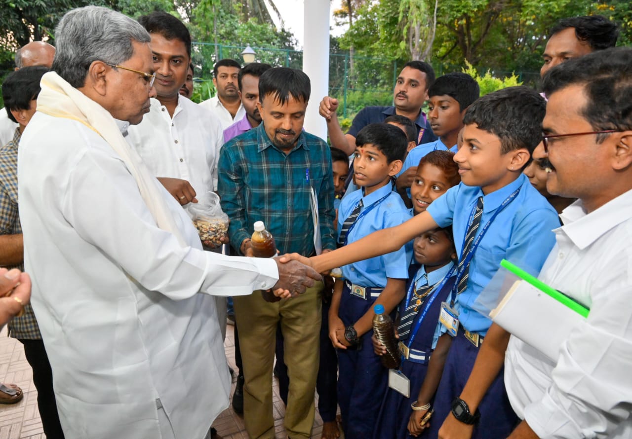ಮಂಗಳೂರು: ಬೆಳ್ತಂಗಡಿ ತಾಲ್ಲೂಕಿನ ಕುತ್ಲೂರು ಸರಕಾರಿ ಶಾಲೆಯ ಮಕ್ಕಳು ಶಾಲೆಯ ಆವರಣದಲ್ಲಿ ತಮ್ಮ ಕಲಿಕೆಯ ಭಾಗವಾಗಿ ತಾವೇ ಬೆಳೆಸಿದ ತರಕಾರಿ ಬೆಳೆಗಳನ್ನು ಮುಖ್ಯಮಂತ್ರಿ ಸಿದ್ದರಾಮಯ್ಯ ಅವರಿಗೆ ಕಾವೇರಿ ನಿವಾಸದಲ್ಲಿ ನೀಡಿ ಸಂಭ್ರಮಿಸಿದರು. ಮುಖ್ಯಮಂತ್ರಿಗಳು ಮಕ್ಕಳನ್ನು ಶ್ಲಾಘಿಸಿ ಶಾಲೆಗೆ ಎರಡು ಕಂಪ್ಯೂಟರ್ ಗಳನ್ಮು ಹಾಗೂ ಪ್ರೊಜೆಕ್ಟರ್ ಉಡುಗೊರೆಯಾಗಿ ನೀಡಿದರು. ಶಾಲೆಯ ಶಿಕ್ಷಕ ವೃಂದ ಮಕ್ಕಳ ಜೊತೆಗೆ ಈ ಸಂದರ್ಭದಲ್ಲಿ ಉಪಸ್ಥಿತರಿದ್ದರು.