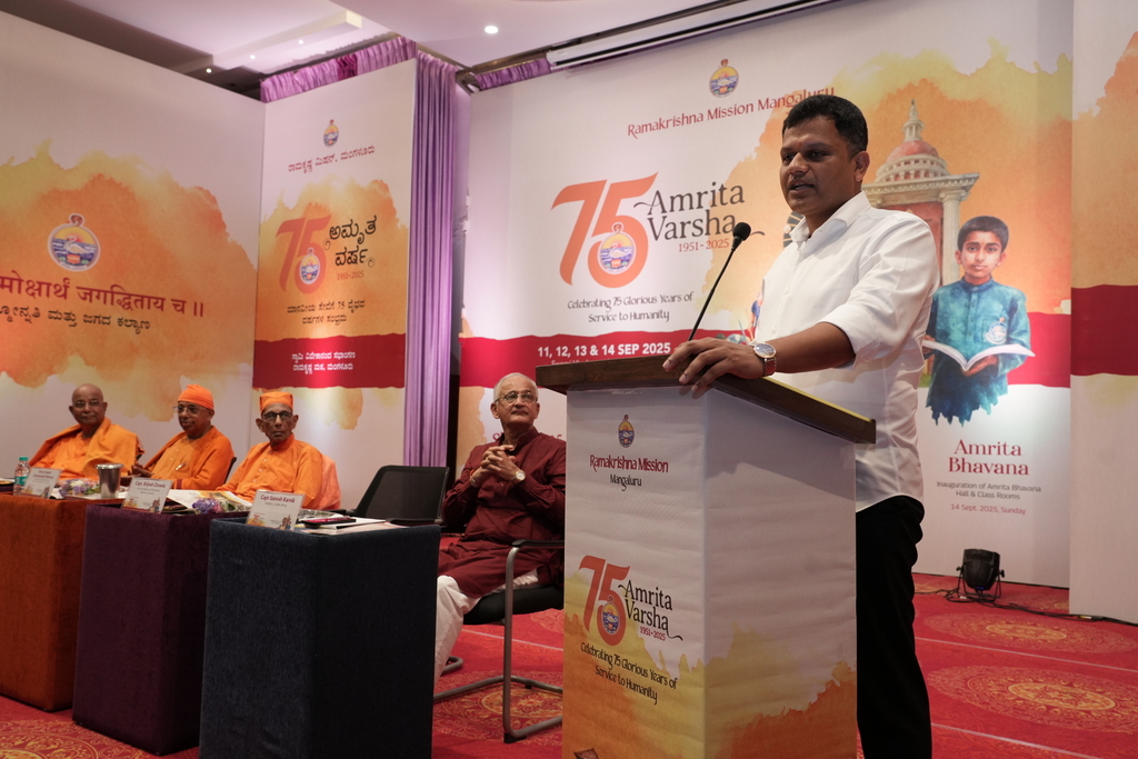 ಮಂಗಳೂರು: ರಾಮಕೃಷ್ಣ ಮಿಷನ್ ಮಂಗಳೂರಿನಲ್ಲಿ 75 ವರ್ಷಗಳನ್ನು ಪೂರೈಸಿರುವ ಹಿನ್ನೆಲೆಯಲ್ಲಿ ಮಂಗಳೂರು ರಾಮಕೃಷ್ಣ ಮಠದ ಆವರಣದಲ್ಲಿ ನಾಲ್ಕು ದಿನಗಳ ಕಾಲ ವಿವಿಧ ಕಾರ್ಯಕ್ರಮಗಳನ್ನು ಹಮ್ಮಿಕೊಳ್ಳಲಾಗಿತ್ತು. ನಾಲ್ಕನೇ ದಿನ ನಡೆದ ಸಭಾ ಕಾರ್ಯಕ್ರಮದಲ್ಲಿ ರಾಮಕೃಷ್ಣ ಮಠ ಹಾಗೂ ರಾಮಕೃಷ್ಣ ಮಿಷನ್ ಉಪಾಧ್ಯಕ್ಷರಾದ ಶ್ರೀಮತ್ ಸ್ವಾಮಿ ಸುಹಿತಾನಂದಜಿ ಮಹಾರಾಜ್ ಅಧ್ಯಕ್ಷತೆ ವಹಿಸಿದ್ದರು. ಈ ಸಂದರ್ಭದಲ್ಲಿ ಮಾತನಾಡಿದ ಅವರು "ರಾಮಕೃಷ್ಣ ಪರಮಹಂಸರಾಗಲೀ, ಶ್ರೀಮಾತೆ ಶಾರದಾದೇವಿಯವರಾಗಲಿ ಅಥವಾ ಸ್ವಾಮಿ ವಿವೇಕಾನಂದರಾಗಲೀ ಸಮಾಜದಲ್ಲಿ ಕಷ್ಟದಲ್ಲಿರುವ ಅಥವಾ ಬಡತನದಲ್ಲಿರುವವರಿಗೆ ಕರುಣೆ ತೋರಿ ಅವರ ಅಭ್ಯುದಯಕ್ಕಾಗಿ ಕೆಲಸ ಮಾಡಿದವರು ಈ ಚಿಂತನೆಗಳೊಂದಿಗೆ ಒಟ್ಟುಗೂಡಿ ಇಂದು ರಾಮಕೃಷ್ಣ ಮಠ ಹಾಗೂ ರಾಮಕೃಷ್ಣ ಮಿಷನ್ ಕೆಲಸ ಮಾಡುತ್ತಿದೆ. ಹಲವಾರು ಜನ ಸನ್ಯಾಸಿಗಳಾಗಿ ಅಥವಾ ಸ್ವಯಂಸೇವಕರಾಗಿ ಕೆಲಸ ಮಾಡುತ್ತಿದ್ದಾರೆ. ಈ ನಿಟ್ಟಿನಲ್ಲಿ ನಾವು ತಾನು, ಮನ ಧನ ಪೂರ್ವಕವಾಗಿ ಇನ್ನಷ್ಟು ಉತ್ತಮ ರೀತಿಯಲ್ಲಿ ಸೇವಾ ಕಾರ್ಯಗಳಲ್ಲಿ ತೊಡಗಿಕೊಳ್ಳೋಣ ಈ ಮೂಲಕ ನಮ್ಮ ಜೀವನವನ್ನು ಪಾವನಗೊಳಿಸಿ ಭಗವಂತನ ಕೃಪೆಗೆ ಪಾತ್ರರಾಗೋಣ" ಎಂದು ಹೇಳಿದರು.