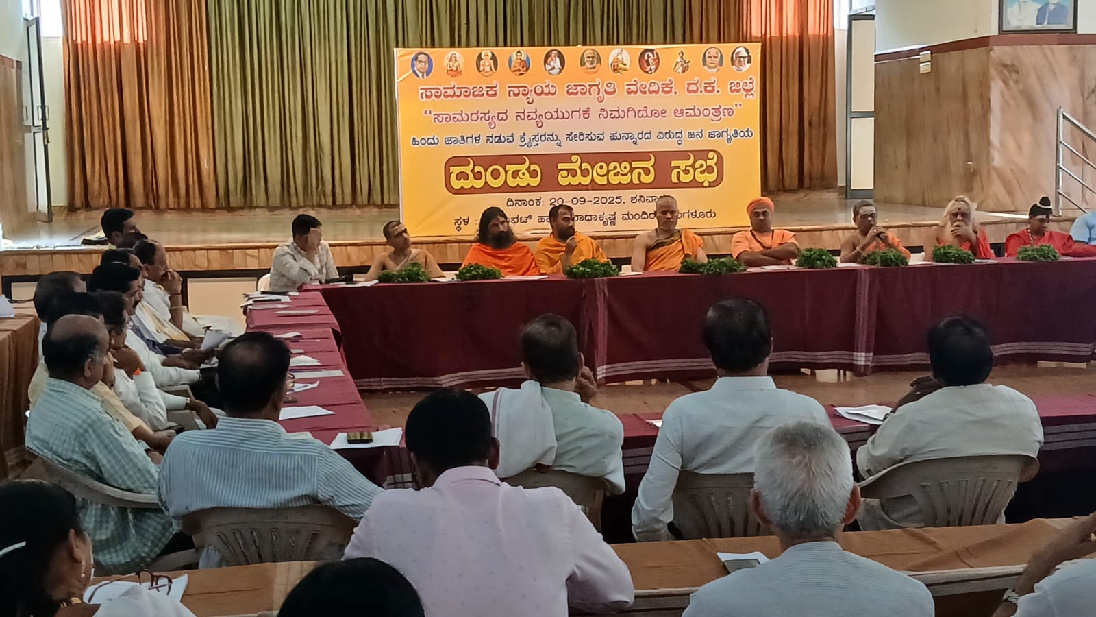 ಮಂಗಳೂರು: ಸಾಮಾಜಿಕ, ಶೈಕ್ಷಣಿಕ ಸಮೀಕ್ಷೆಯ ಪಟ್ಟಿಯಲ್ಲಿ ಹಿಂದೂ ಧರ್ಮದ 47 ಉಪಜಾತಿಗಳ ಜೊತೆ ಇರುವ ಕ್ರಿಶ್ಚಿಯನ್ ಪದವನ್ನು ಕೈಬಿಡದಿದ್ದರೆ ಸಮೀಕ್ಷೆಯನ್ನು ಬಹಿಷ್ಕರಿಸಲು ಸಾಮಾಜಿಕ ನ್ಯಾಯ ಜಾಗೃತಿ ವೇದಿಕೆಯ ದ.ಕ ಜಿಲ್ಲೆ ವತಿಯಿಂದ ನಗರದ ಬಾಳಂಭಟ್ ಸಭಾಂಗಣದಲ್ಲಿ ನಡೆದ ಹಿಂದೂ ಧಾರ್ಮಿಕ ಪ್ರಮುಖರ, ಸಾಧು ಸಂತರ ದುಂಡುಮೇಜಿನ ಸಭೆ ನಿರ್ಣಯ ಕೈಗೊಂಡಿದೆ ಎಂದು ಗುರುಪುರ ವಜ್ರದೇಹಿ ಮಠದ ರಾಜಶೇಖರಾನಂದ ಸ್ವಾಮೀಜಿ ತಿಳಿಸಿದ್ದಾರೆ.