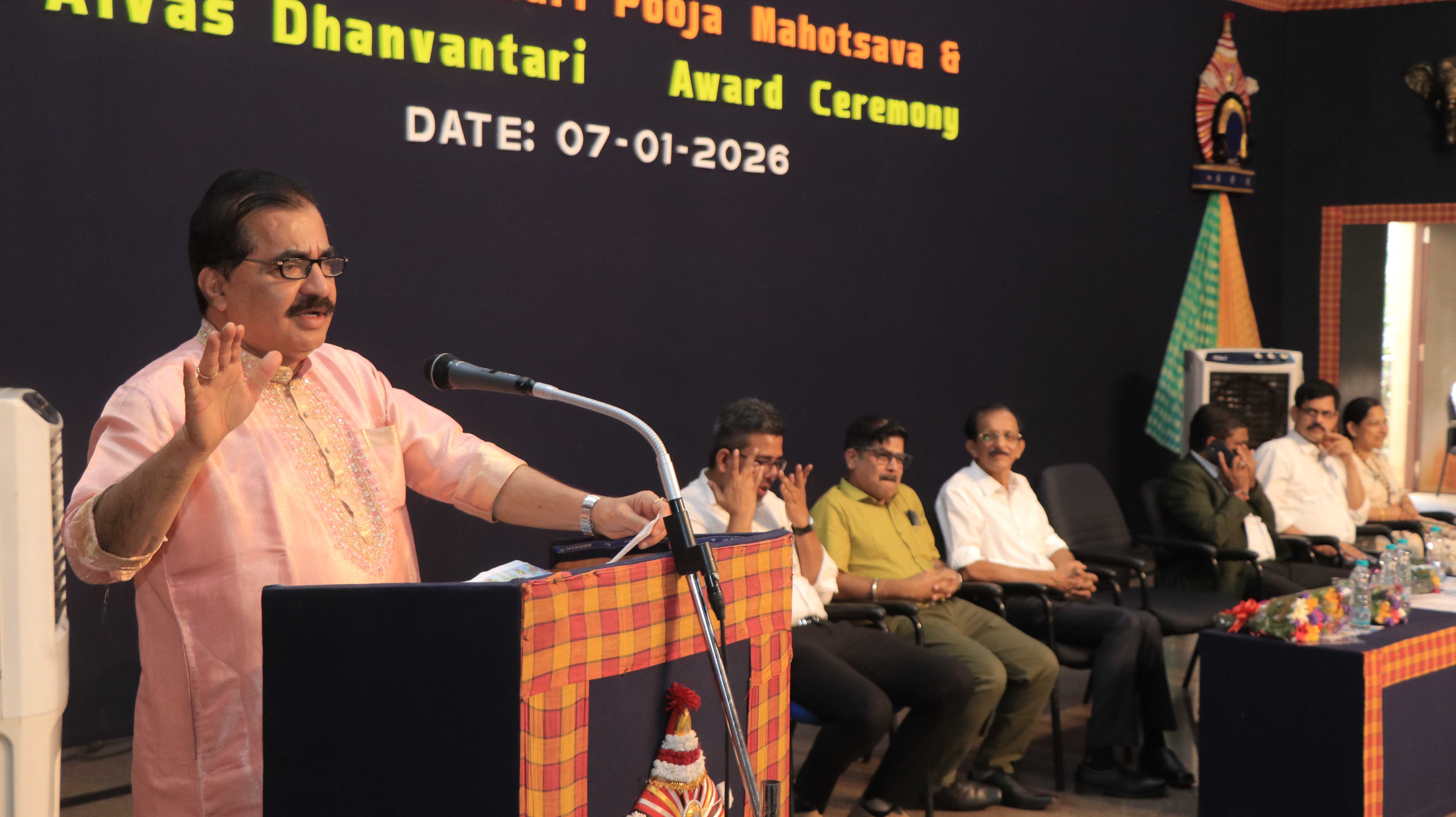 ಸoಶೋಧನೆಯ ಅಗತ್ಯತೆಯನ್ನು ಉಲ್ಲೇಖಿಸಿ ಮಾತನಾಡಿದ ಅವರು “ಇಂದಿನ ವೈದ್ಯಕೀಯ ಕ್ಷೇತ್ರದ ಬೆಳವಣಿಗೆ ಸಂಶೋಧನೆ ಆಧಾರಿತವಾಗಿದೆ. ವಿದ್ಯಾರ್ಥಿಗಳು ಕೇವಲ ಪಾಠಪುಸ್ತಕಕ್ಕೆ ಸೀಮಿತರಾಗದೆ ನವೀಕೃತ ಜ್ಞಾನ, ಕ್ಲಿನಿಕಲ್ ಸ್ಟಡಿ, ಎವಿಡೆನ್ಸ್ ಬೇಸ್ಡ್ ಪ್ರಾಕ್ಟೀಸ್ ಕಡೆ ಗಮನ ಹರಿಸಬೇಕು. ರಾಜೀವ್ ಗಾಂಧಿ ವಿಜ್ಞಾನ ವಿವಿಯು ನೀಡುತ್ತಿರುವ ವಿದ್ಯಾರ್ಥಿ ಸಂಶೋಧನಾ ಅನುದಾನವನ್ನು ಸದುಪಯೋಗಪಡಿಸಿಕೊಳ್ಳುವಂತೆ ವಿದ್ಯಾರ್ಥಿಗಳಿಗೆ ಕರೆ ನೀಡಿದರು. ಅಧ್ಯಕ್ಷತೆವಹಿಸಿ ಮಾತನಾಡಿದ ಆಳ್ವಾಸ್ ಶಿಕ್ಷಣ ಪ್ರತಿಷ್ಠಾನದ ಅಧ್ಯಕ್ಷ ಡಾ. ಎಂ.ಮೋಹನ್ ಆಳ್ವ, ಆಯುರ್ವೇದ ವಿದ್ಯಾಭ್ಯಾಸವು ಕೇವಲ ಪದವಿಪ್ರಾಪ್ತಿಯ ಮಾರ್ಗವಲ್ಲ; ಮೌಲ್ಯ–ಶಿಸ್ತು–ಸೇವೆಗಳನ್ನು ಅಳವಡಿಸಿಕೊಳ್ಳುವ ಜೀವನಪಥವಾಗಿದೆ ಎಂದರು. ಇಂದಿನ ಯುಗದಲ್ಲಿ ಹೊಸ ರೋಗಗಳು, ಜೀವನಶೈಲಿ ಬದಲಾವಣೆಗಳು, ತಂತ್ರಜ್ಞಾನಾಭಿವೃದ್ಧಿ ಹಾಗೂ ವಿಜ್ಞಾನಾಧಾರಿತ ಸಂಶೋಧನೆಗಳು ನಿರಂತರವಾಗಿ ನಡೆಯುತ್ತಿದೆ. ಇಂತಹ ಸಂದರ್ಭದಲ್ಲಿ ಆಯುರ್ವೇದ ವೈದ್ಯರು ಮತ್ತು ವಿದ್ಯಾರ್ಥಿಗಳು ಕೇವಲ ಸಾಂಪ್ರದಾಯಿಕ ಜ್ಞಾನಕ್ಕೆ ಸೀಮಿತರಾಗದೆ, ಅದರ ವೈಜ್ಞಾನಿಕ ದೃಢೀಕರಣ, ಆಧುನಿಕ ದೃಷ್ಟಿಕೋನ ಮತ್ತು ಸಂಶೋಧನಾ ಫಲಿತಾಂಶಗಳೊAದಿಗೆ ತಮ್ಮ ಜ್ಞಾನವನ್ನು ನವೀಕರಿಸಿಕೊಳ್ಳುವುದು ಮುಖ್ಯ ಎಂದರು. ಅಲಂಗಾರಿನ ಸುಬ್ರಮಣ್ಯ ಭಟ್ರ ನೇತೃತ್ವದಲ್ಲಿ ಧನ್ವಂತರಿ ಪೂಜಾ ಮಹೋತ್ಸವ, ಶಿಷ್ಯೋಪನಯನ ಸಂಸ್ಕಾರ ನೆರವೇರಿತು. ಕಾಲೇಜಿನ ಪ್ರಥಮ ವರ್ಷದ ಸ್ನಾತಕ ಹಾಗೂ ಸ್ನಾತಕೋತ್ತರ ವಿಭಾಗದ 160 ಮಕ್ಕಳಿಗೆ ಶಿಷ್ಯೋಪನಯನ ಸಂಸ್ಕಾರ ನಡೆಯಿತು. ಹಿಮಾಲಯ ವೆಲ್ನೆಸ್ ಕಂಪೆನಿವತಿಯಿAದ 2019-20 ನೇ ಸಾಲಿನಲ್ಲಿ ಜೀವಕಾ ಪ್ರಶಸ್ತಿ ಯನ್ನು ಡಾ ಪ್ರಭು ಆರ್ ಹೆಚ್ ಹಾಗೂ ಆಯುರ್ವಿಶಾರಧಾ ಪ್ರಶಸ್ತಿಯನ್ನು ಡಾ ಅಮೂಲ್ಯ ಜಿ ಶೆಟ್ಟಿ ಯವರಿಗೂ, 2020-21ನೇ ಸಾಲಿನಲ್ಲಿ ಜೀವಕಾ ಪ್ರಶಸ್ತಿ ಯನ್ನು ಡಾ ಸ್ಪಂದನಾ ಪಟೇಲ್ ಹಾಗೂ ಆಯುರ್ವಿಶಾರಧಾ ಪ್ರಶಸ್ತಿಯನ್ನು ಡಾ ಮನೀಷಾರಿಗೆ, ತಲಾ ಹದಿನೈದು ಹಾಗೂ ಹತ್ತು ಸಾವಿರ ನಗದು ಬಹುಮಾನದೊಂದಿಗೆ ನೀಡಿ ಗೌರವಿಸಲಾಯಿತು. ವಿವಿಧ ಸಾಂಸ್ಕೃತಿಕ ಹಾಗೂ ಕ್ರೀಡಾ ಸ್ಪರ್ಧೆಯಲ್ಲಿ ವಿಜೇತರಾದವರಿಗೆ ಬಹುಮಾನ ವಿತರಣೆ ಹಾಗೂ ಕಾಲೇಜಿನ ವಾರ್ಷಿಕೋತ್ಸವದ ಹಿನ್ನಲೆಯಲ್ಲಿ ಮಕ್ಕಳಿಂದ ಸಾಂಸ್ಕೃತಿಕ ಕರ್ಯಕ್ರಮ ನಡೆಯಿತು.