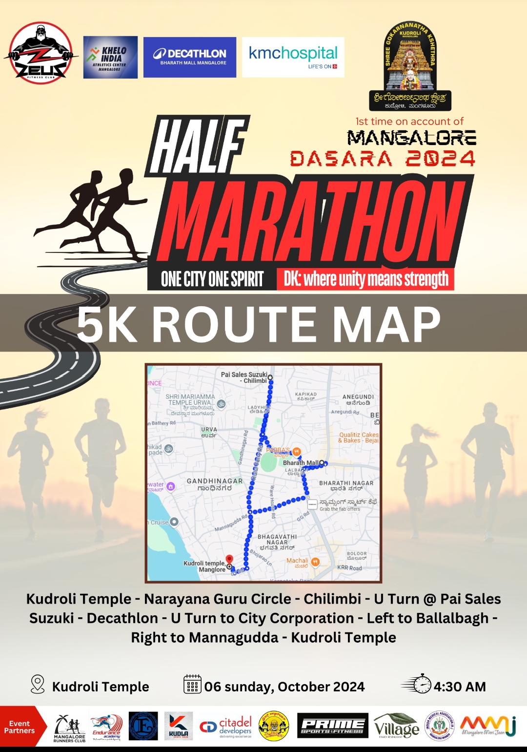 ಮಂಗಳೂರು: ಕುದ್ರೋಳಿ ಶ್ರೀ ಗೋಕರ್ಣನಾಥ ದೇವಸ್ಥಾನದಲ್ಲಿ ನಡೆಯುತ್ತಿರುವ ಮಂಗಳೂರು ದಸರಾ ಮಹೋತ್ಸವ ಅಂಗವಾಗಿ ಕ್ಷೇತ್ರದ ವತಿಯಿಂದ ಜಿಯೂಸ್ ಫಿಟ್ನೆಸ್ ಕೇಂದ್ರ, ಖೋಲೋ ಇಂಡಿಯಾ ಹಾಗೂ ಡೆಕತ್ಲಾನ್ ಸಹಭಾಗಿತ್ವದಲ್ಲಿ ಅ.6ರಂದು ದಸರಾ ಹಾಫ್ ಮ್ಯಾರಥಾನ್ ಪಂದ್ಯಾಟ ನಡೆಯಲಿದೆ ಎಂದು ದೇವಸ್ಥಾನದ ಕೋಶಾಧಿಕಾರಿ ಪದ್ಮರಾಜ್ ಆರ್. ತಿಳಿಸಿದ್ದಾರೆ.